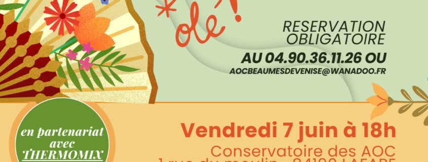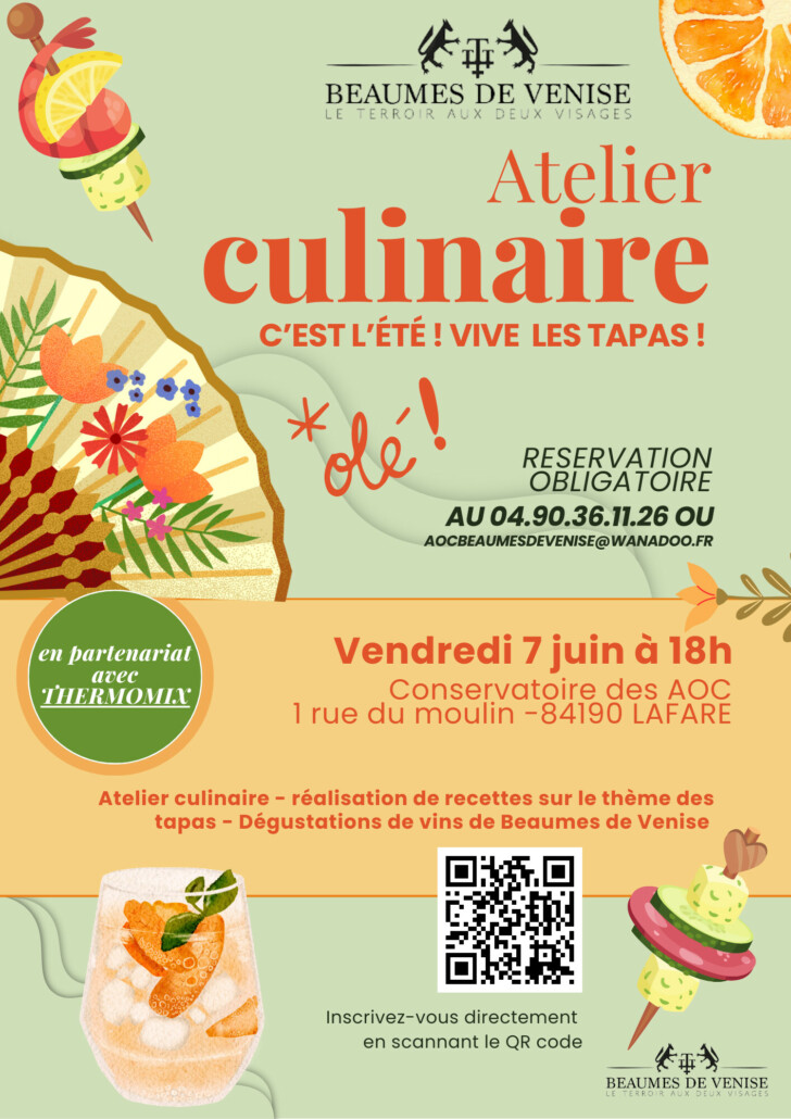 Vous êtes gourmands ? Vous aimez les apéros de la belle saison ? Venez vous inspirer lors du prochain atelier sur le thème tapas et finger food … réalisation de recettes au Thermomix, suivi d’une dégustation des vins de Beaumes de Venise et des créations culinaires dans une ambiance conviviale et un cadre agréable …